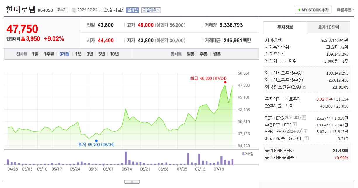 우리나라 방산기업 중 1위로, K-9 자주포를 포함한 다양한 지상무기와 항공우주, 해상 방위 산업에 강점을 가지고 있습니다. 최근 3년 동안 주가는 5배 넘게 뛰었으며, 트럼프 총격 사건 이후 주가는 더욱 상승하고 있습니다.